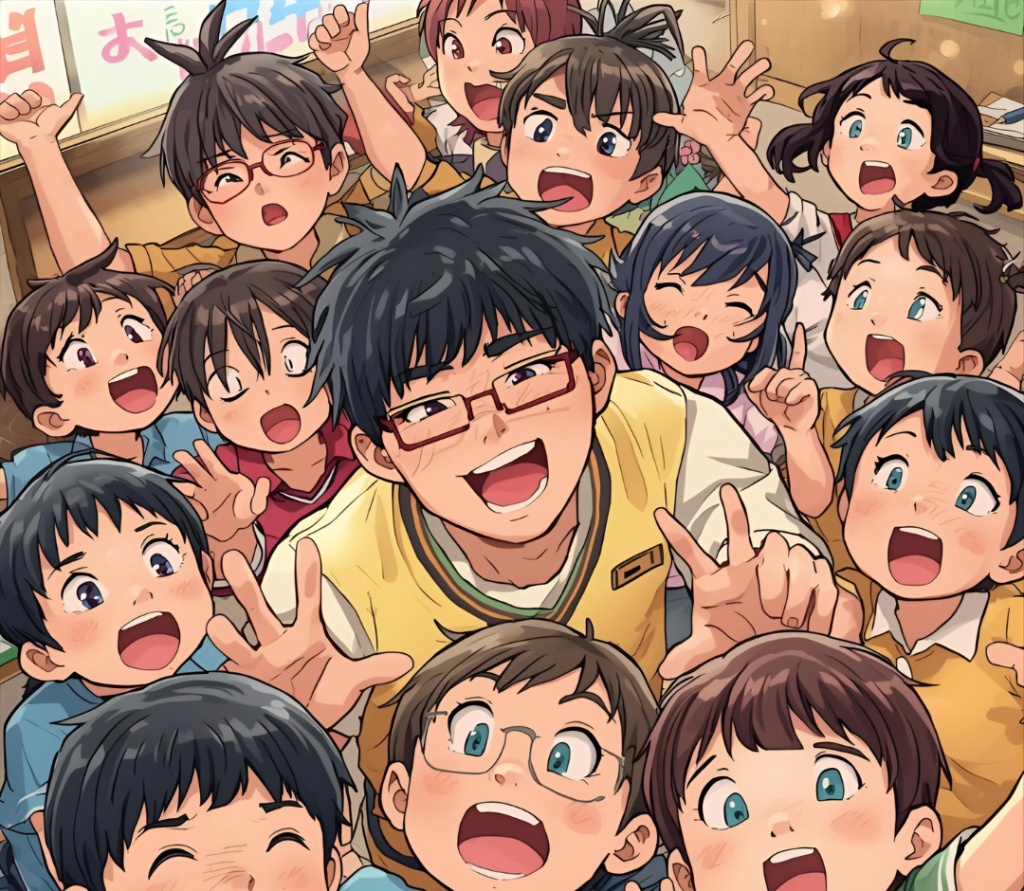 画像生成アプリに「見習い保育士(日本人男性)」と注文したらこんなイラストが出てきました。生成AIの進化ってすごいですね