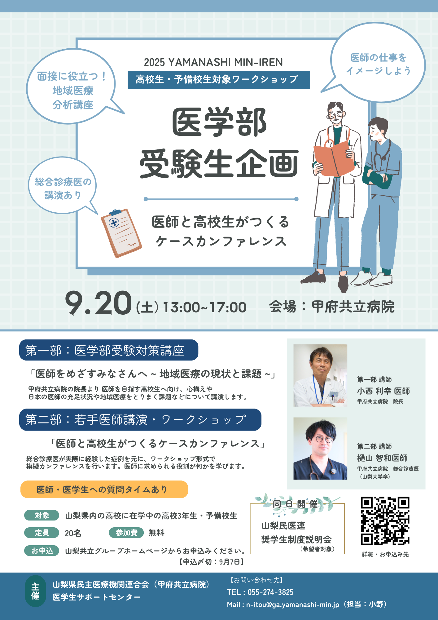 ※企画終了後、山梨民医連の奨学生制度説明会も開催します。(希望者のみ対象)