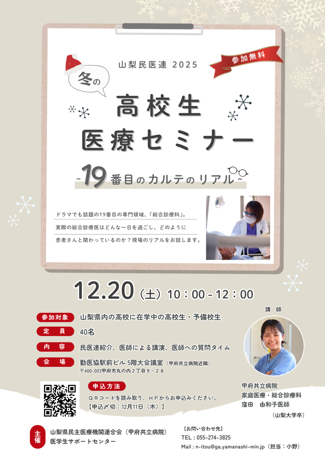 2025年冬の高校生医療セミナー 開催のお知らせ【締切延長しました】