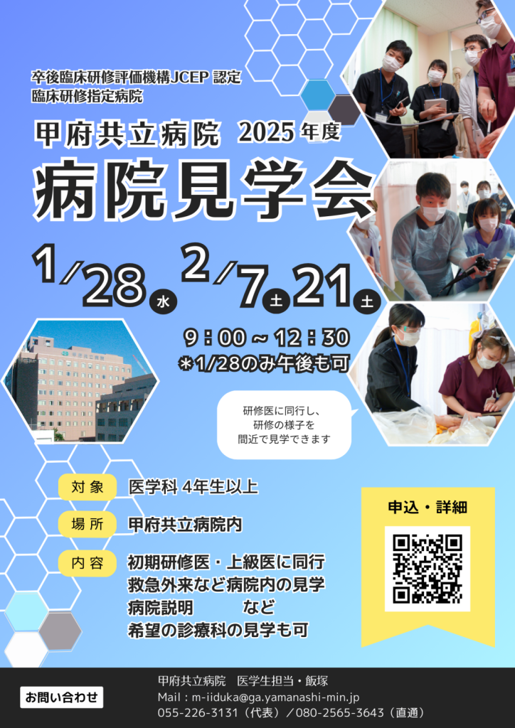 医学生向け 甲府共立病院 初期研修説明&見学会を開催します。